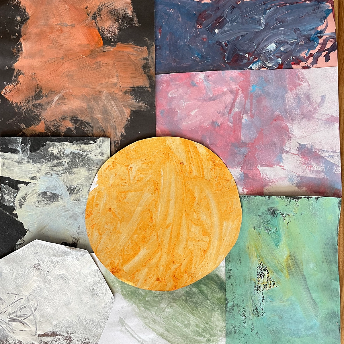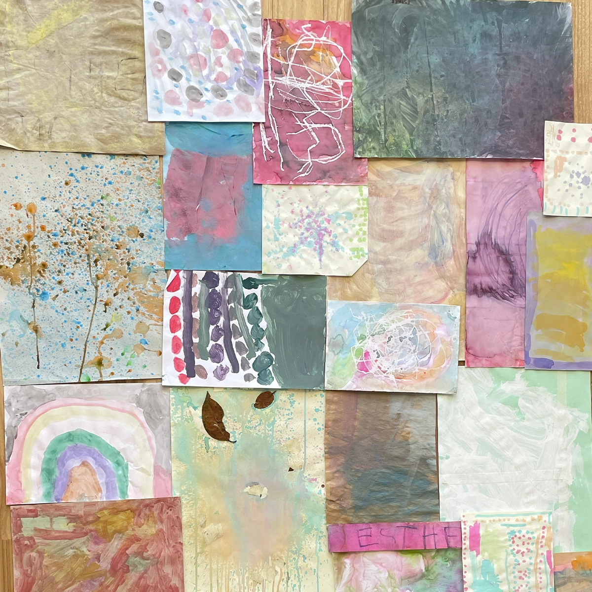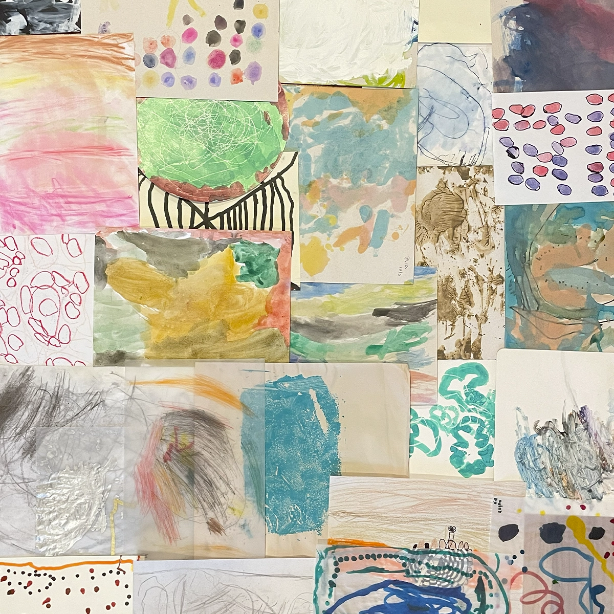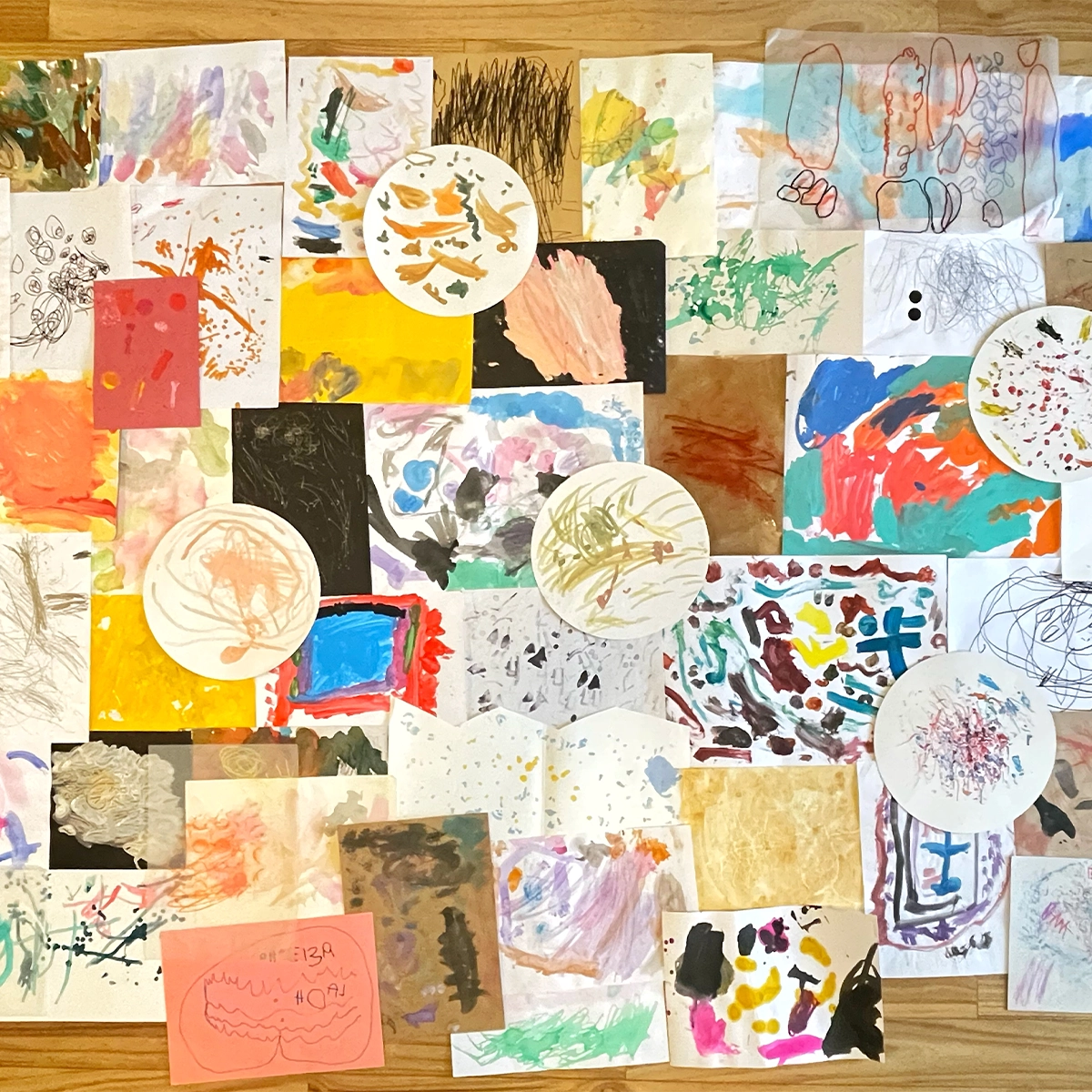 Feitas com artes e desenhos abstratos do início da infância até mais ou menos 4 anos (garatujos, rabiscos, carimbos de pés e mãos).