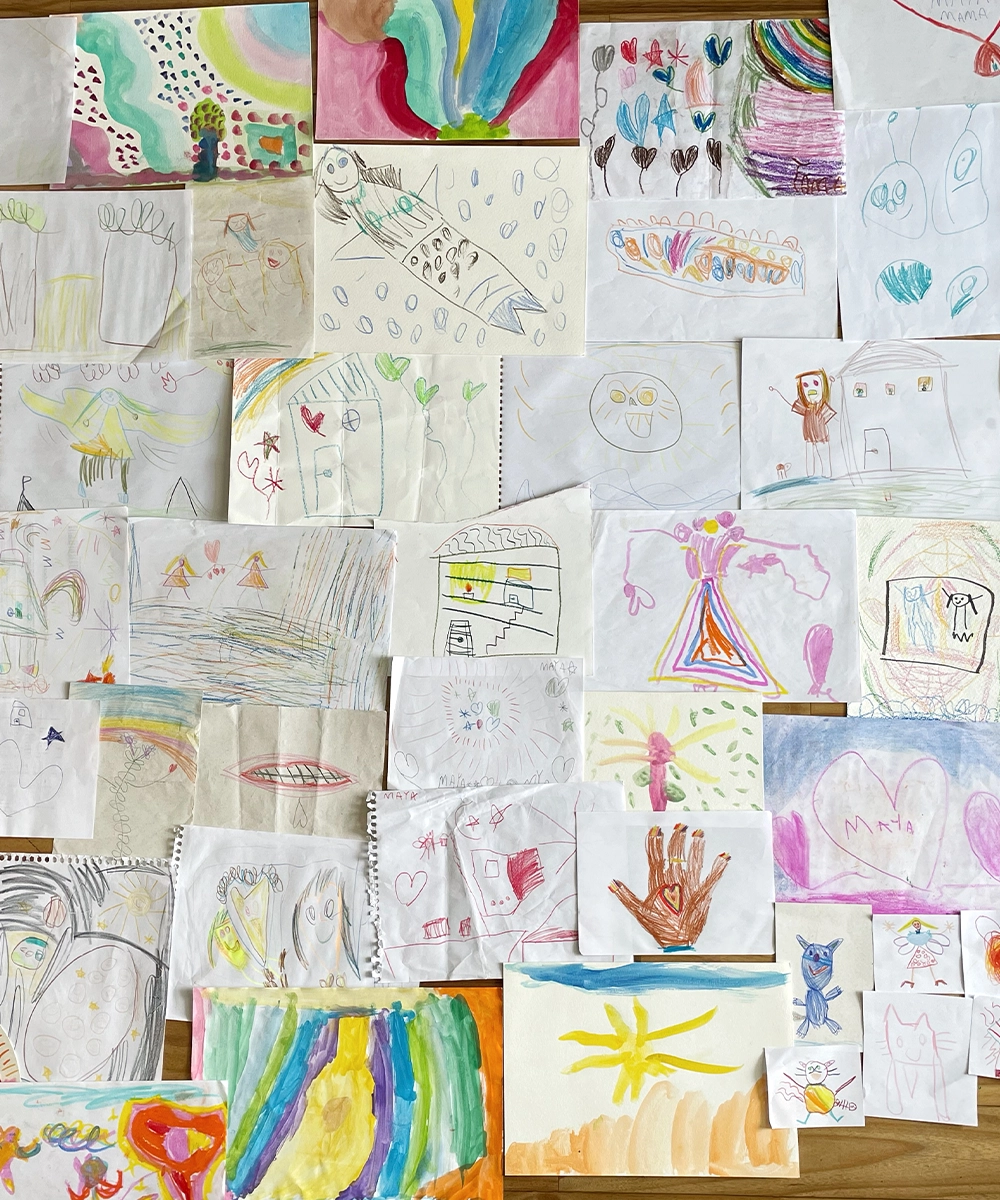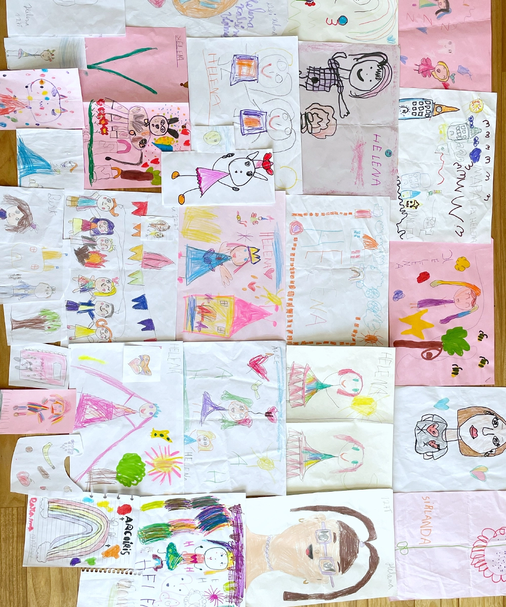 A família separa os desenhos originais e envia por correio ou portador para artista.