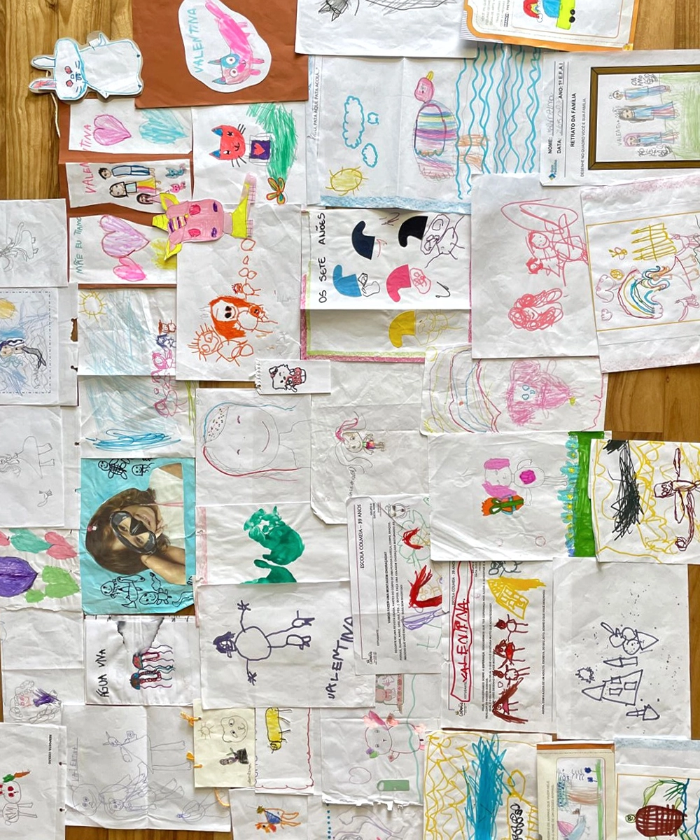 Esses desenhos, artes e rabiscos infantis guardados em armários registram toda a memória afetiva e energia criativa de cada criança. É o transbordo de suas percepções e sentimentos sobre seu mundo. E este universo retratado por ela não merece estar esquecido dentro de uma gaveta. É o resgate desta memória afetiva e identidade imagética que me move como artista.